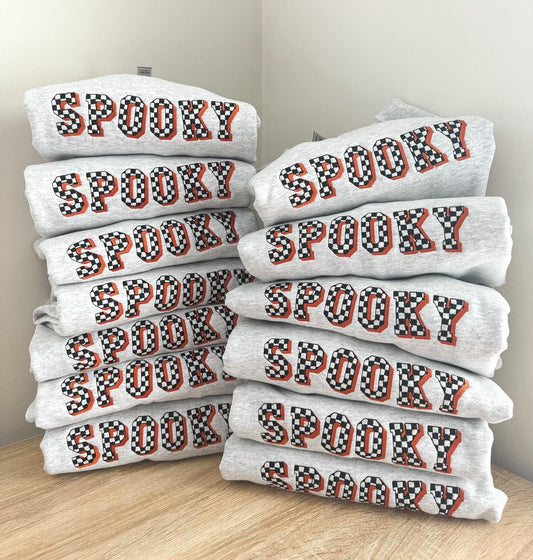 Checkered “Spooky” Embroidered Crewneck